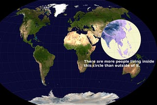 La búsqueda del círculo más pequeño que contiene la mitad de la población mundial, y otros círculos de población curiosos.