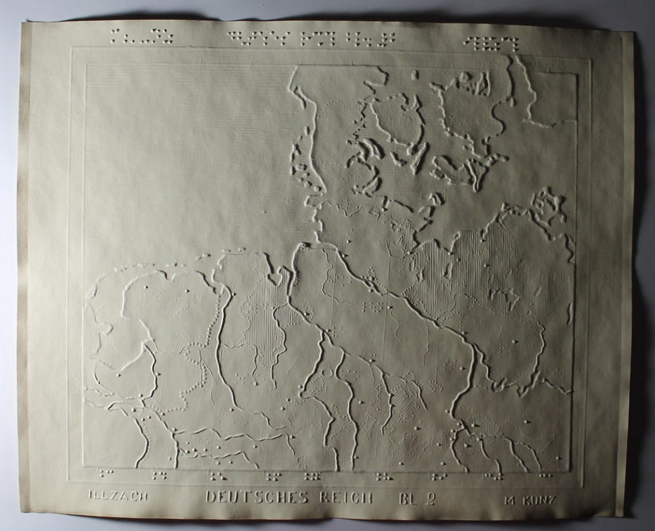Martin Kunz nació se convirtió en 1881, a los 34 años de edad, en el directo del instituto para ciegos de Mülhausen, en Alsacia (Francia / Alemania). Allí comenzó a construir mapas en madera, pero pronto se pasó a realizar planchas para poder generar una gran producción de dibujos, mapas y globos terráqueos destinados para invidentes.