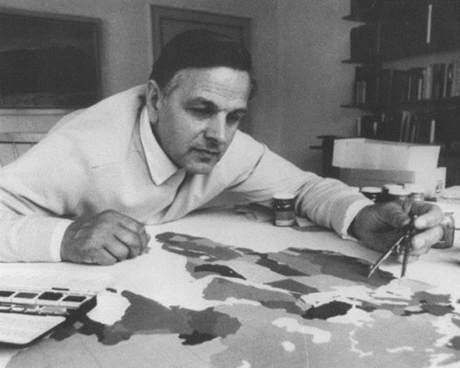 Arno Peters fue un cineasta alemán que, tras formarse en Hollywood y buscar un hueco en la escena alemana, dio un giro radical a su carrera. En 1945 terminó un doctorado en historia del arte y periodismo, donde encontró su obsesión: las representaciones gráficas de la historia equitativas y la propaganda. Principalmente, se centró en cronogramas que mostrasen de forma equitativa la historia completa de la humanidad, no necesariamente centrada en Europa, sobre lo que publicó algún artículo en 1952.