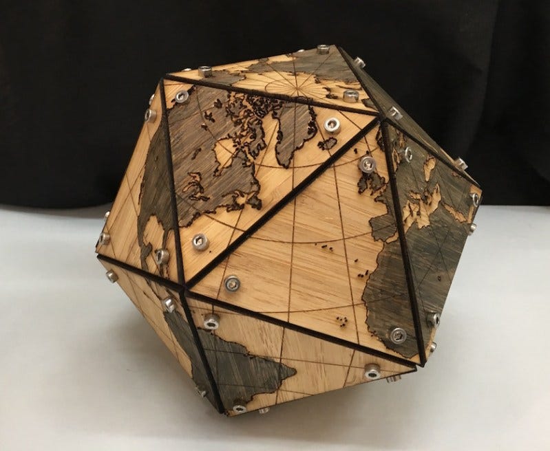 Muchas gracias por la referencia. Es fantástico ver cómo un mapa puede servir para transmitir una historia de unidad al igual que otros sirven para sembrar división. Y al mismo tiempo, es un mapa muy capaz de ilustrar el hecho de que siempre nos aproximemos parcialmente a la realidad: fue también inspiración para la otra publicación que también me inspiraste, y en la que también citaba a Fuller: https://newsletter.ingenierodeletras.com/p/aspirar-a-lo-inalcanzable. A base de poliedros regulares, imperfectos pero factibles, tratamos de aspirar a lo inalcanzable. Gracias por el genial artículo.