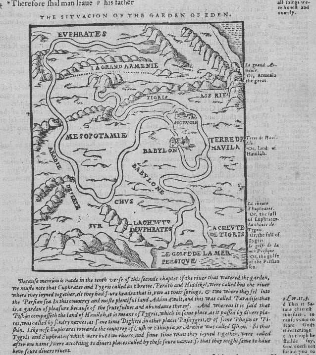 Es más, Juan Calvino, en una versión comentada de la Biblia, incorporó un mapa de Mesopotamia para hacer referencia al Edén y lo que pudo haber sido su ubicación.