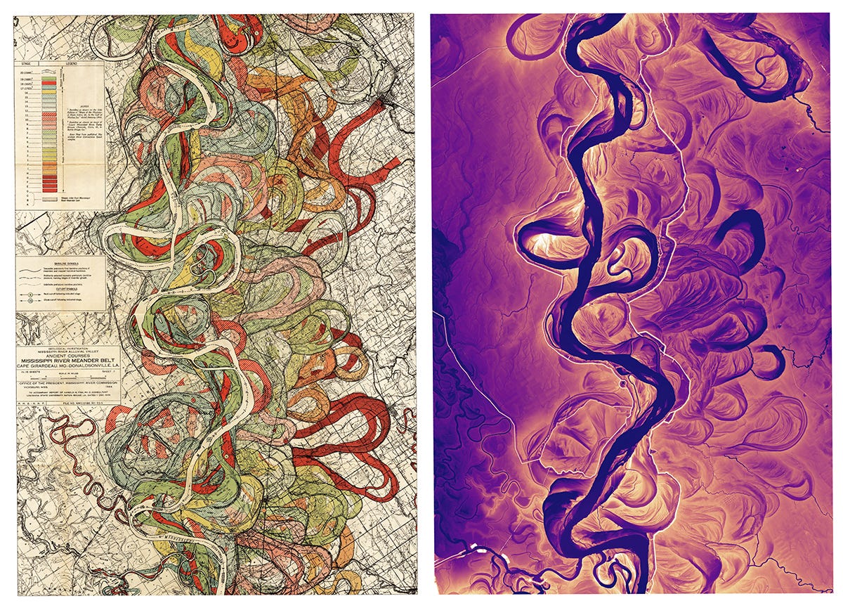 Pero desde hace milenios, cualquier pueblo que habitara cerca de un río en una llanura era perfectamente consciente de que el río es una entidad cambiante. A finales del siglo XIX, el geólogo William Morris Davis describió formalmente los meandros como una consecuencia del ciclo de erosión del río. E incluso hubo varios levantamientos cartográficos del bajo Mississippi a comienzos del siglo XX, pero ninguno de ellos logró lo que hizo Harold Fisk años más tarde.