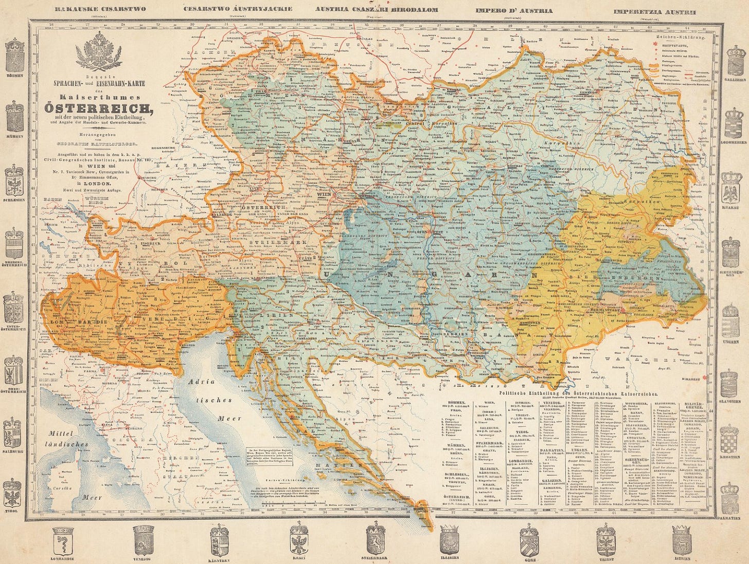 En la segunda mitad del siglo XIX, el Imperio austrohúngaro era una de las entidades políticas con más variedad lingüística y étnica de toda Europa. A pesar de los incipientes movimientos nacionalistas, la diversidad cultural que agrupaba el imperio era inamovible. Era tal la identidad multiétnica del imperio que se publicaron varias decenas de mapas que describían de distintas formas cómo se agrupaban los distintos pueblos.