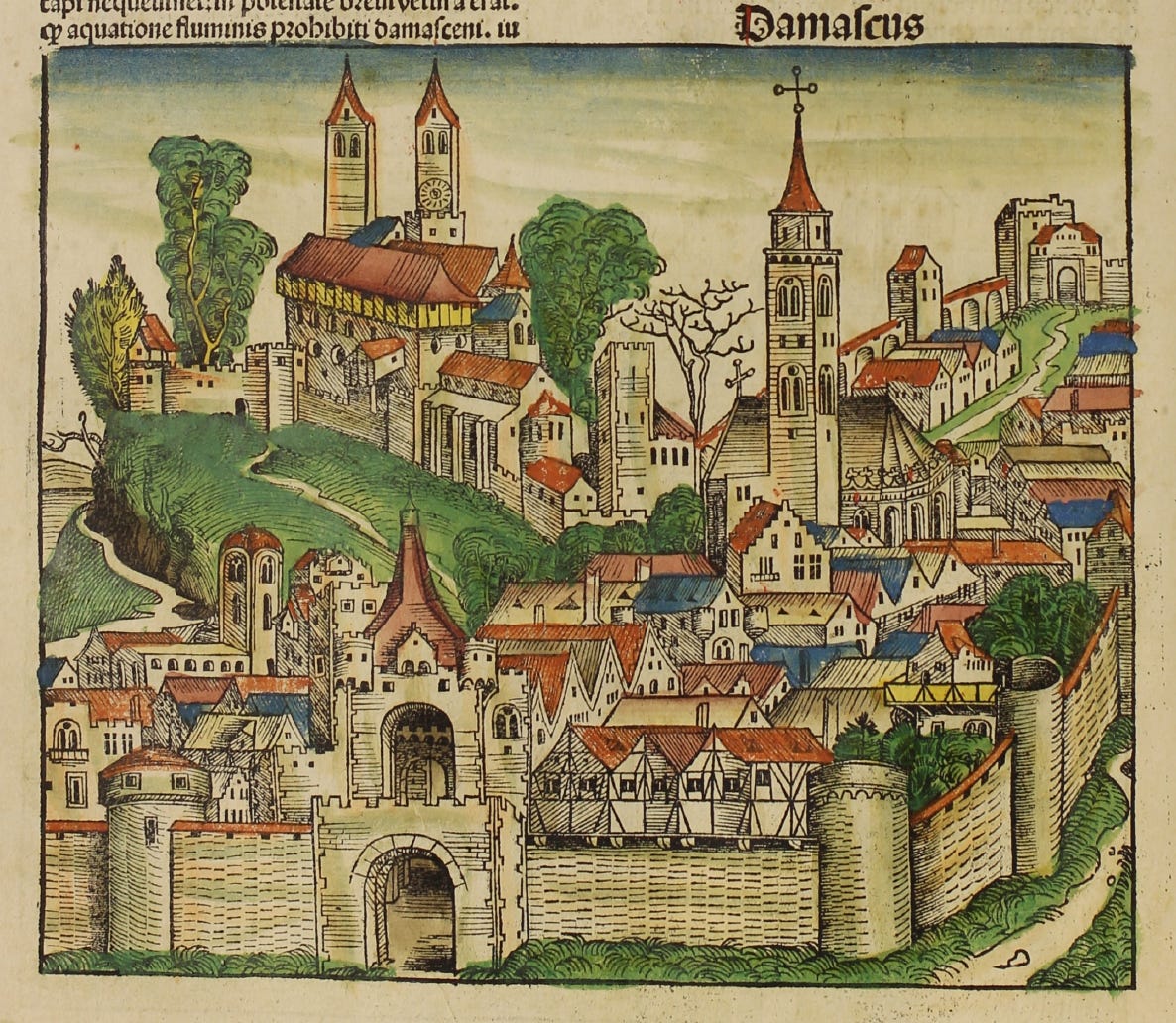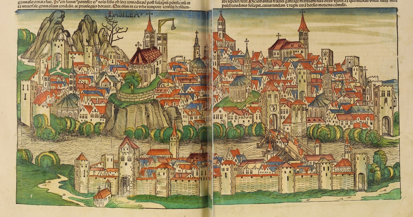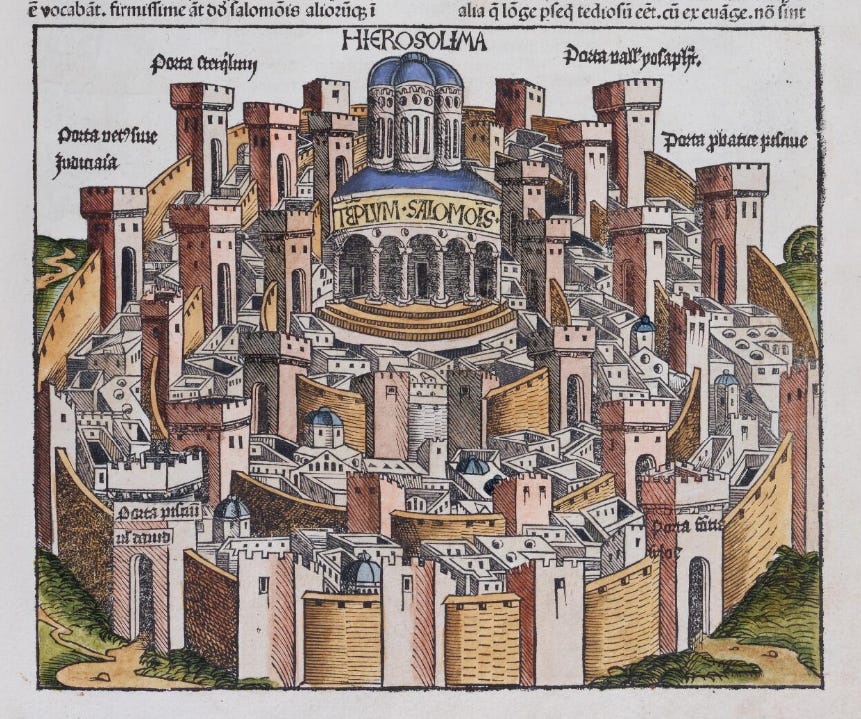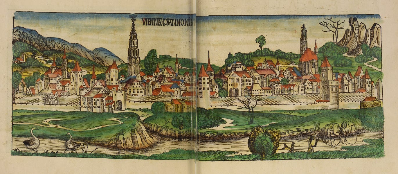 Entre los mapas, en su sentido más amplio, destacan especialmente las representaciones de ciudades de Europa y Oriente Medio. A finales del siglo XV, el arte no había encontrado especial interés en las ciudades. Es cierto que se pueden encontrar algunas representaciones en manuscritos medievales, pero en su gran mayoría distaban mucho de ser una representación fiel de la ciudad y se limitaban a idealizaciones centradas en características reconocibles.