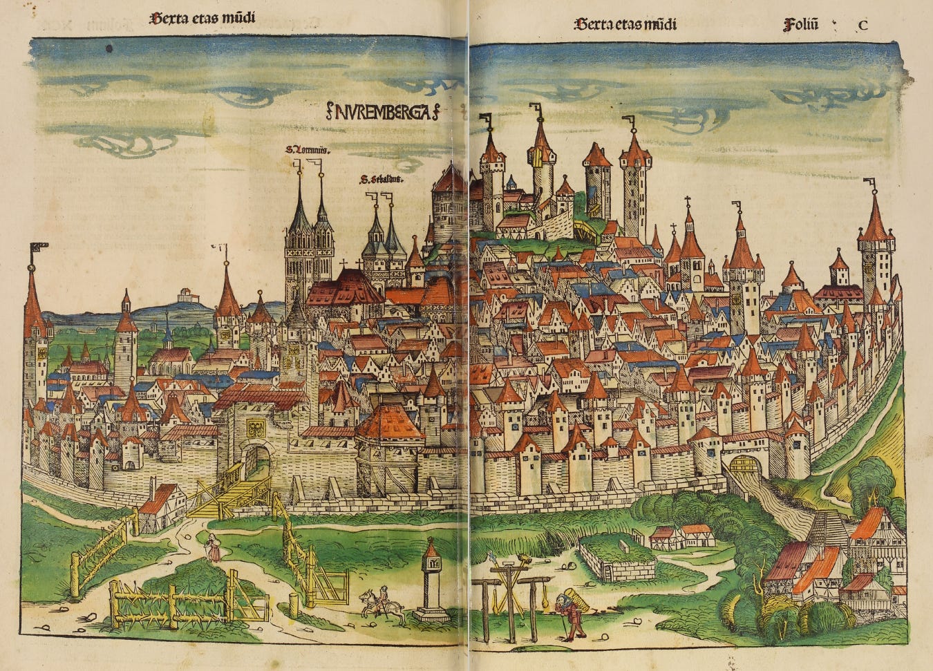 Sin más, aquí os dejo que disfrutéis de un puñado de ellas. No sorprende que Núremberg sea precisamente la ciudad que aparece más fielmente representada, ya que todo el trabajo de Schedel fue comisionado por dos importantes comerciantes de Núremberg: Sebald Schreyer y su yerno Sebastian Kammermeister.