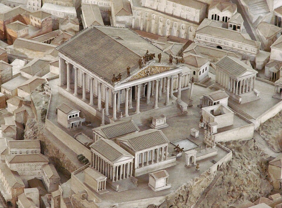 La construcción de los edificios de la Colina Capitolina, los más alabados en las listas de maravillas, se remontan al siglo VI a. C. Entre todas las edificaciones, destacaba el tempo dedicado a Júpiter Óptimo Máximo, así como el complejo de fortificaciones que protegía la colina. De las siete colinas fundacionales de Roma, la Capitolina era la que tenía un mayor peso religioso y político. Este conjunto arquitectónico no tuvo un único final, ya que tuvo múltiples incendios, reconstrucciones y abandonos que hicieron que se perdiera su grandeza.