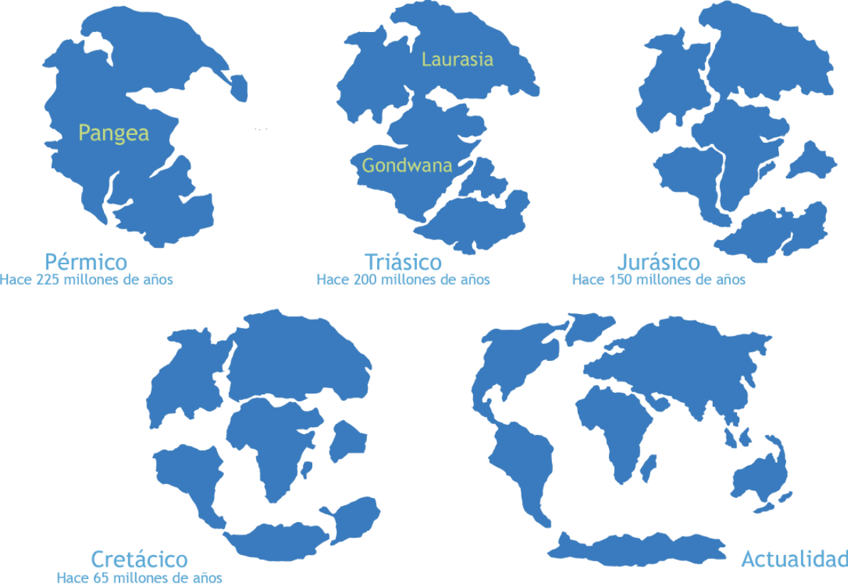 Sabemos que Pangea se formó hace unos 300 millones de años, aunando todos los continentes. Se estima que estuvo unificada durante unos 100 millones de años, cuando se partió en dos, dando lugar a Laurasia y Gondwana, con el océano de Tetis entre medias. Estos se dividieron a su vez en múltiples continentes hasta llegar a la distribución continental que tenemos en la actualidad.