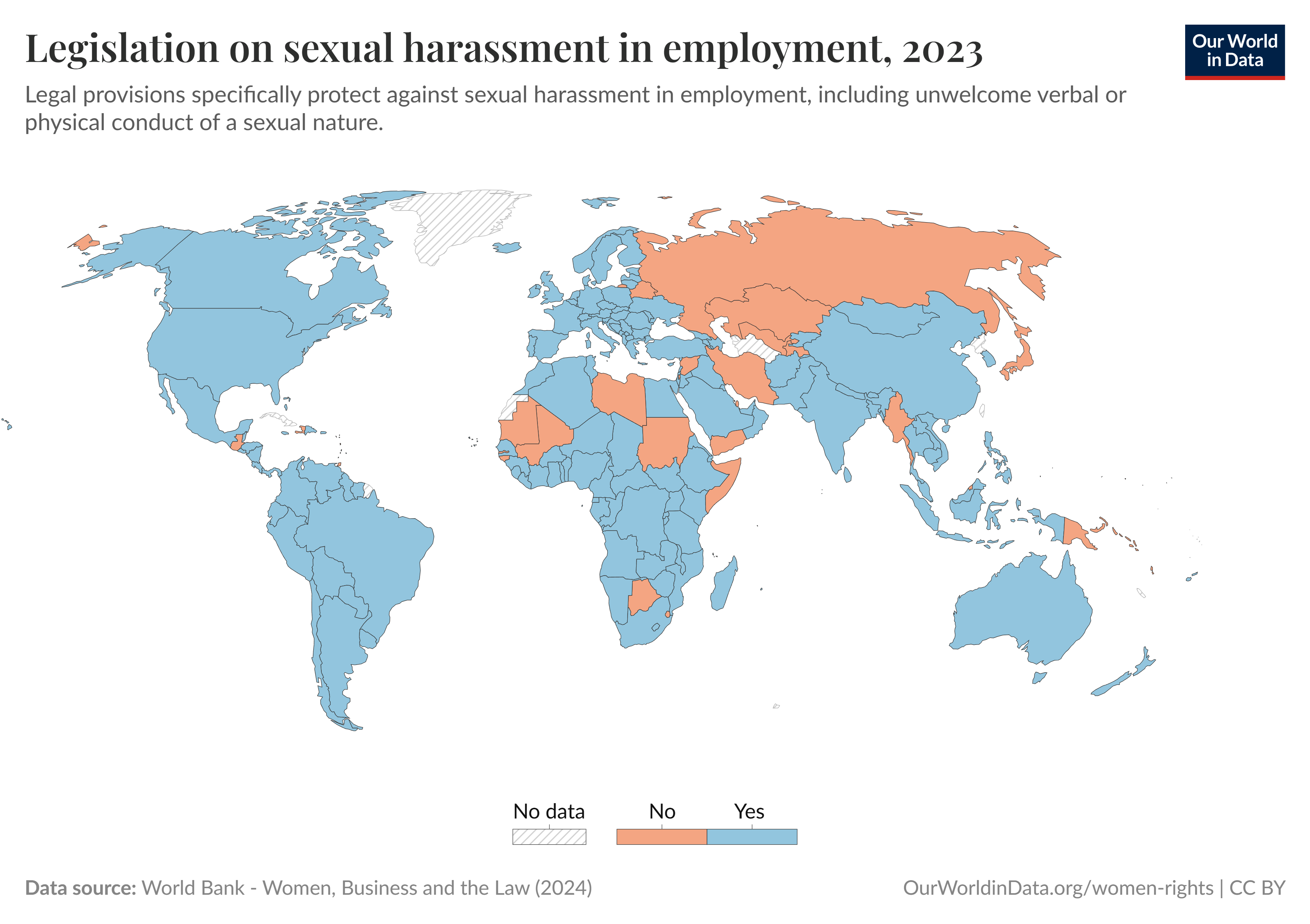 Los datos del Banco Mundial otorgan una igualdad legal total a hombres y mujeres en diez países: Bélgica, Canadá, Dinamarca, Francia, Islandia, Irlanda, Letonia, Luxemburgo, Portugal y Suecia. La infografía se cura en salud y sí que afirma que esa igualdad legal únicamente se sustenta con las áreas evaluadas. La realidad es mucho más compleja y aún hay muchas áreas en las que hay que trabajar y continuar avanzando, en algunos países mucho más que en otros.
