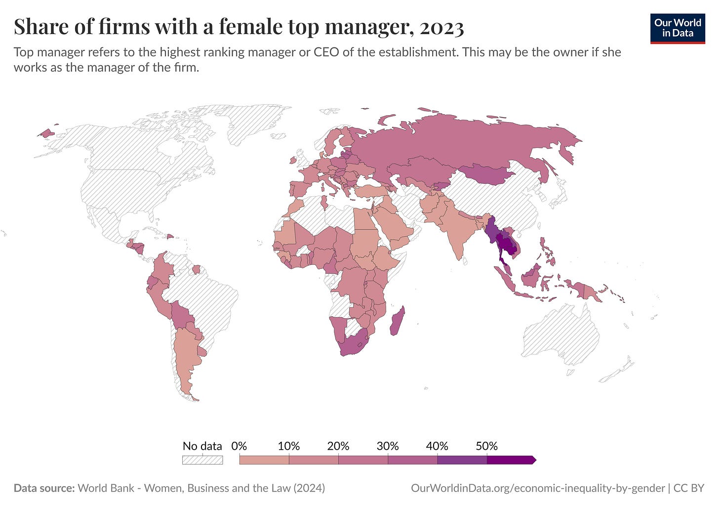 En todo el mundo, tan solo Tailandia y Camboya pueden presumir de tener más mujeres que hombres dirigiendo sus empresas, seguidos muy de cerca por Laos y Myanmar. En este aspecto en concreto, el Sudeste Asiático está muchos pasos por delante del resto del mundo.