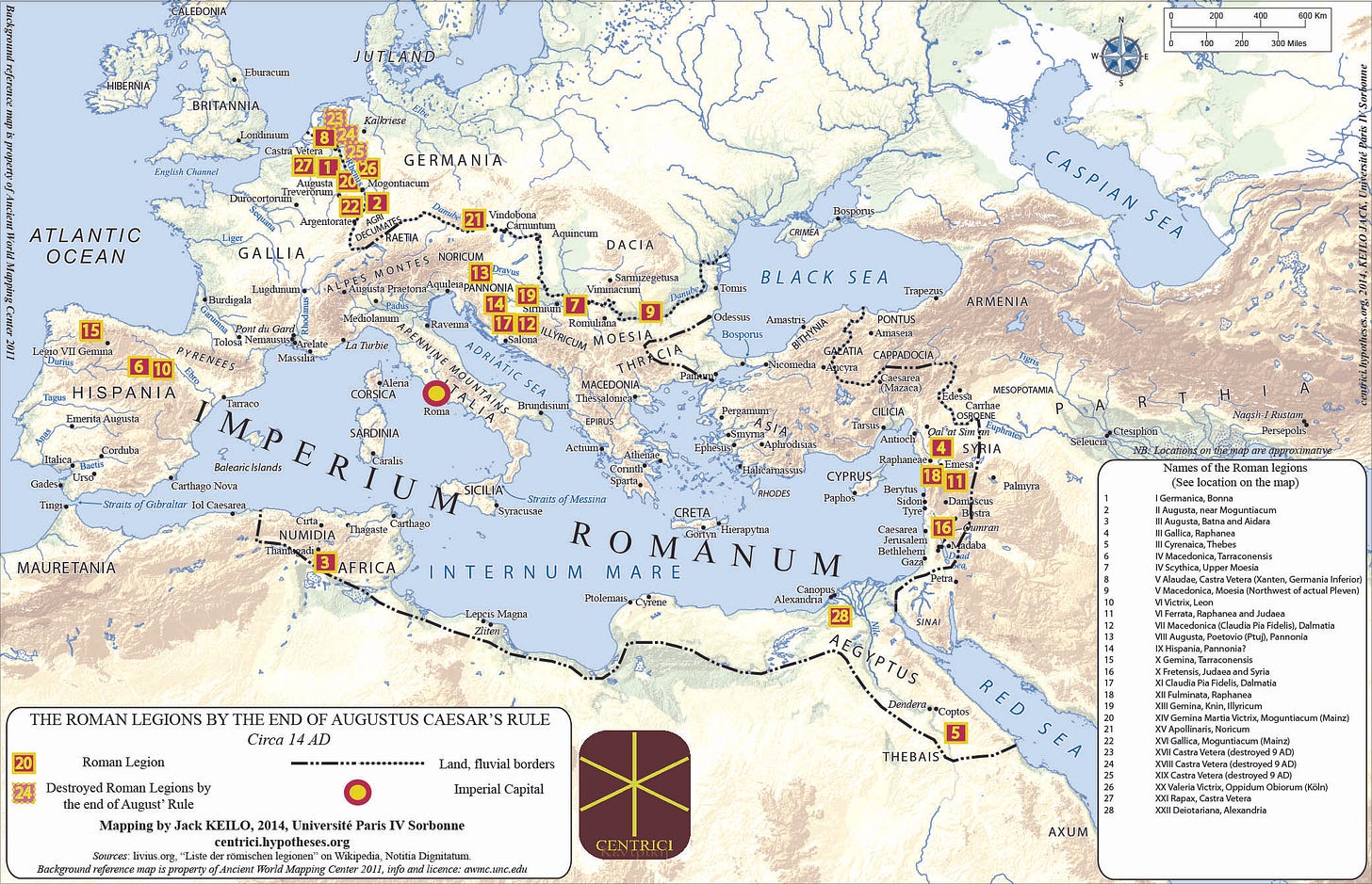 Las 28 nuevas legiones no respondían ya ante el Senado o ante el general que las lideraba, sino directamente ante Augusto. Además, fueron distribuidas, tal y como se muestra en el mapa, por las fronteras más estratégicas del Imperio, tanto a modo de defensa como sirviendo de fuerzas de ocupación.