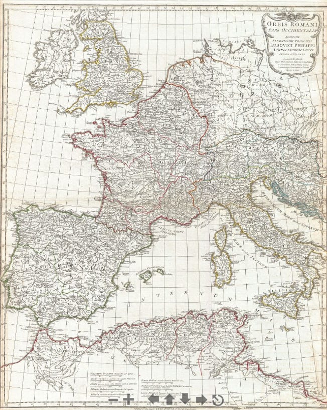 Estos mapas ayudan a comprender lo mucho que ya se sabía del Imperio Romano hace más de dos siglos, en comparación con otras civilizaciones de la época. Por si os interesa, Anville dibujó varios mapas más detallados del Imperio Romano, como este otro de Britania y este de la Galia.