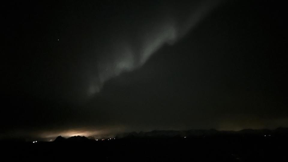 Intenté tomar alguna fotografía, pero fue totalmente imposible con la luz del interior de la cabina del avión y lo poco intensas que eran las auroras. Aun así, pude volver a ver durante unos minutos unas tenues auroras, con un color muy cercano al blanco, que se alzaban muy poco sobre el horizonte.