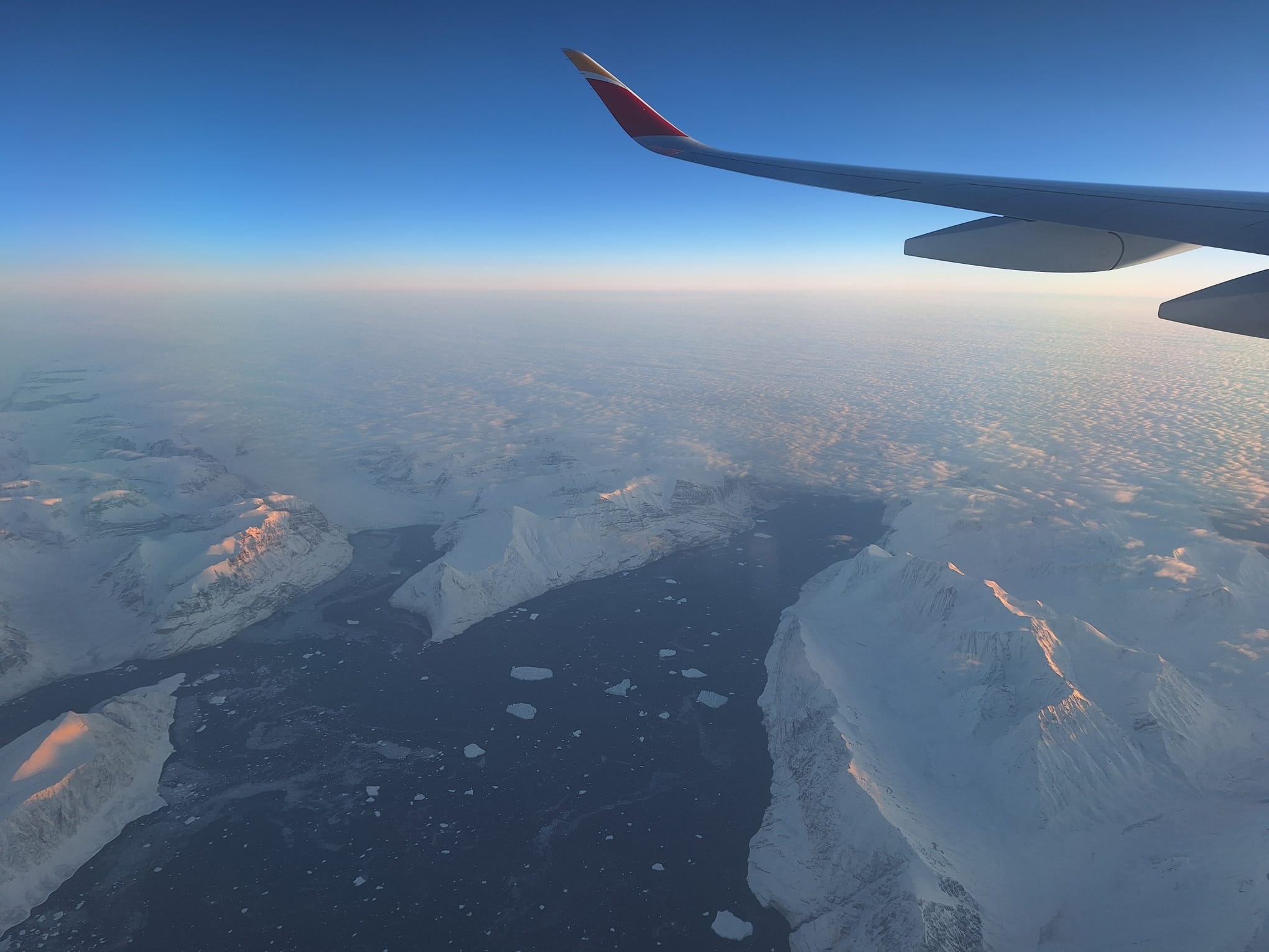 Pero lo realmente sorprendente fue el viaje de vuelta. Un amigo ya me había contado que el trayecto de Iberia se realizaba hacia el este, sobrevolando Alaska, el norte de Canadá y Groenlandia.