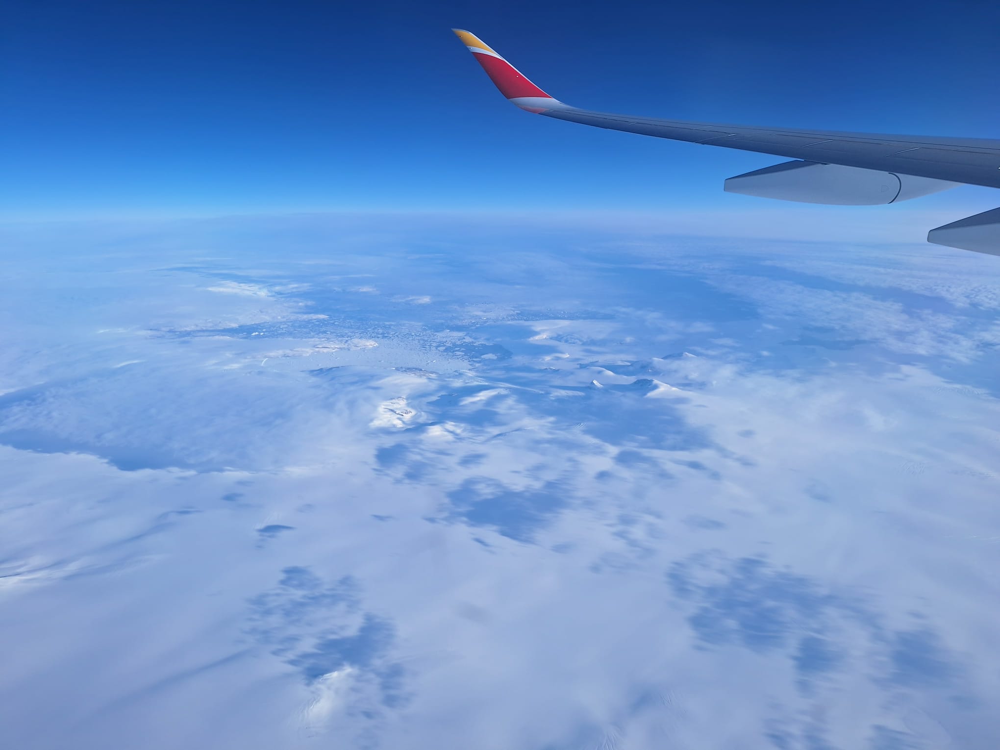 Una vez estábamos atravesando Groenlandia, las nubes cubrieron por completo el hielo, y no volvimos a ver tierra hasta que entramos en la Península Ibérica. Groenlandia o Svalbard no son destinos que estén en la parte alta de mi lista para viajar, ya que percibo que hay poco que hacer y la experiencia depende mucho del tiempo con el que te encuentres. Pero ver todo ese paisaje desde las nubes me ha despertado más curiosidad.