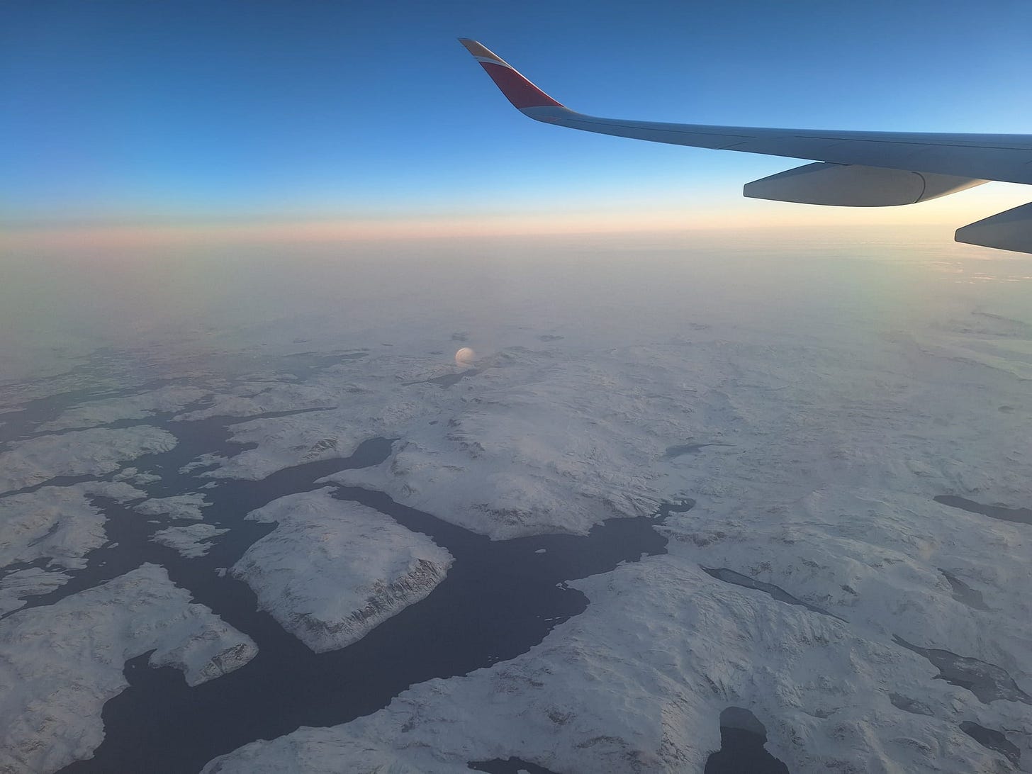 Los que llevéis leyéndome tiempo, ya sabréis que las auroras boreales y yo tenemos un pasado. Llevo con esa espinita clavada desde hace diez años y, de algún modo, tenía la esperanza de poder quitármela durante este viaje. Era la primera vez que iba a viajar en avión bastante cerca del polo norte y, además, de noche, lo que aumentaba notablemente las posibilidades de ver auroras.
