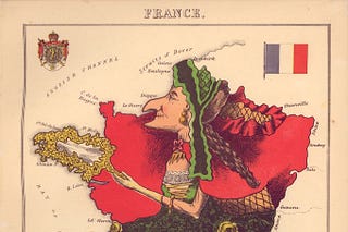Una maravillosa colección de mapas antropomórficos publicados en 1868, dentro del libro Geographic Fun.